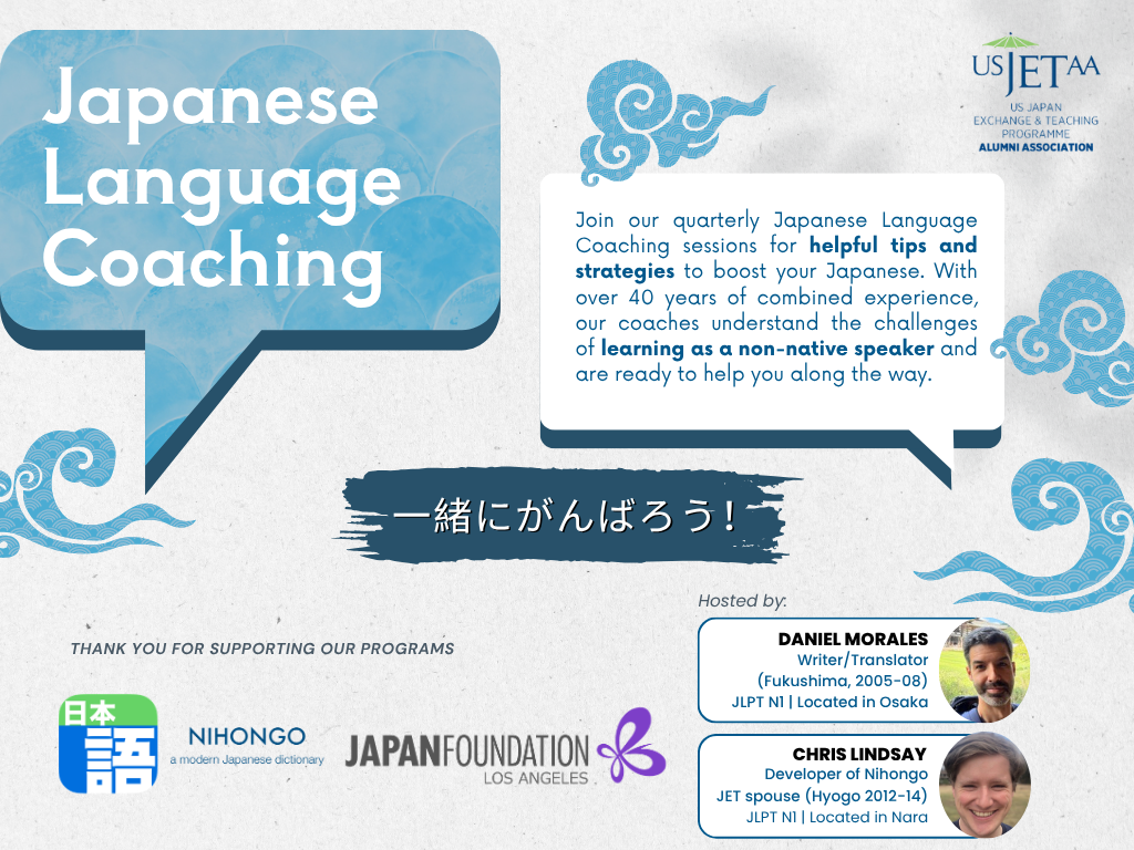 Led by experts Daniel Morales, Fukushima 2005-2008, (host of the Japanese Reading Group) and Chris Lindsay, Hyogo 2012-2014, (Nihongo app developer), you'll receive personalized advice drawn from their combined experience of over 40 years. 一緒にがんばろう—let’s work hard and succeed together!